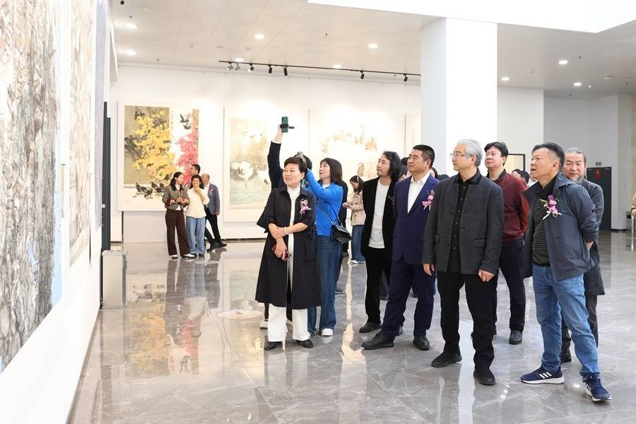 这次展览中,入选国展的画家代表发言。典礼为止后,嘉宾们共同不雅摩画展。